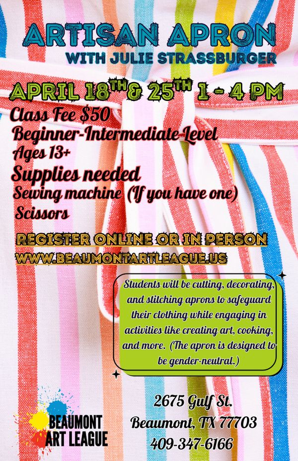Students will be cutting, decorating, and stitching aprons to safeguard their clothing while engaging in activities like creating art, cook...