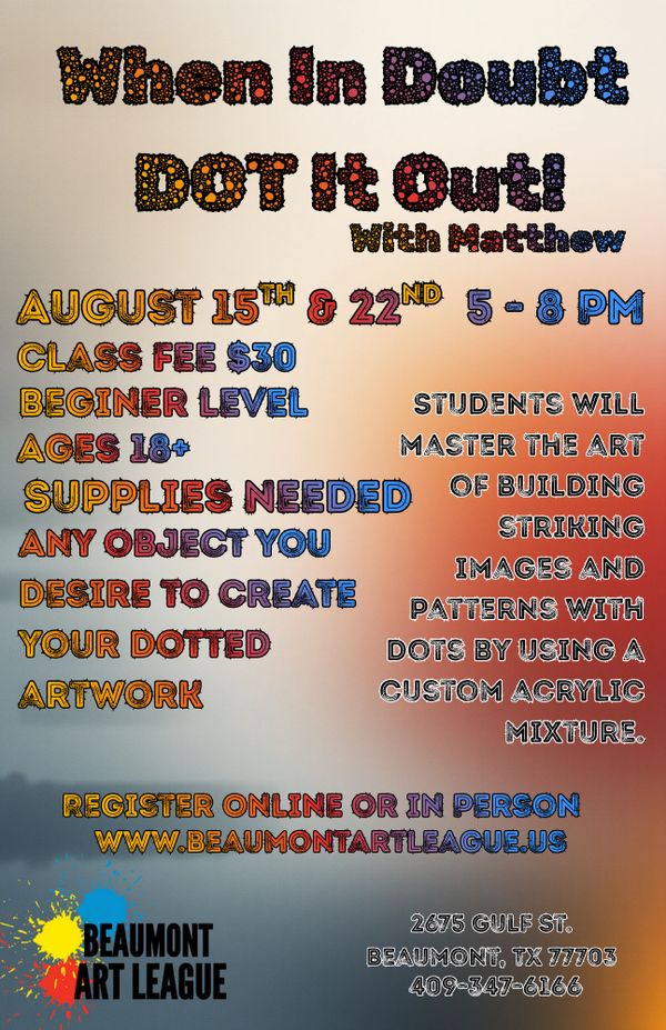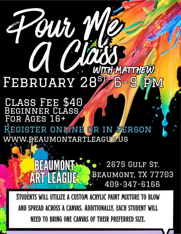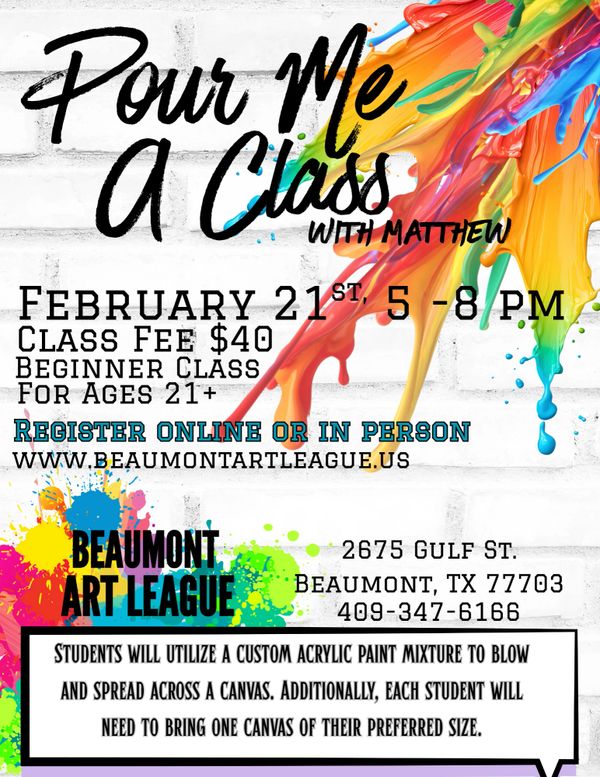 Students will utilize a custom acrylic paint mixture to blow and spread across a canvas. Additionally, each student will need to bring one ...