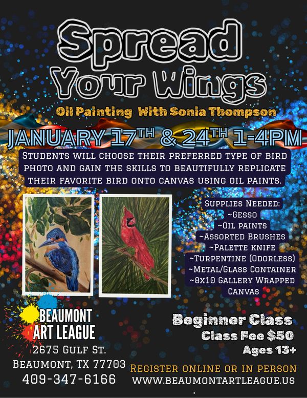 Students will choose their preferred type of bird photo and gain the skills to beautifully replicate their favorite bird onto canvas using ...